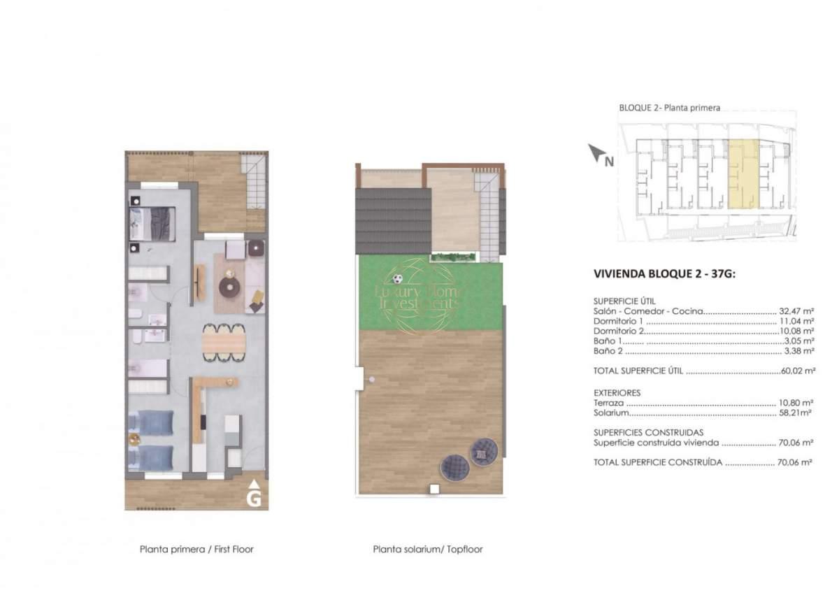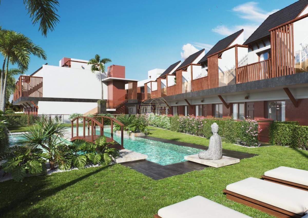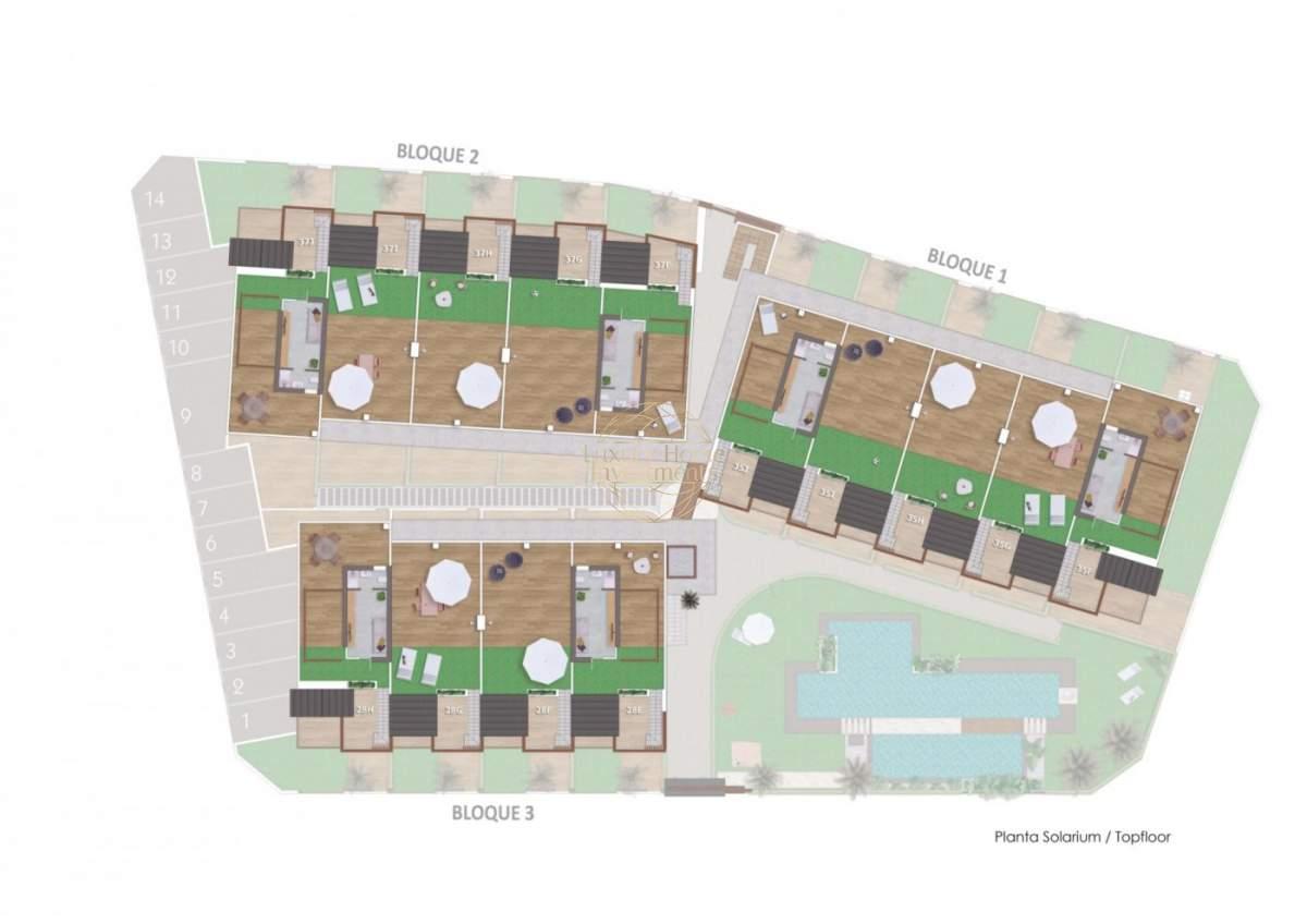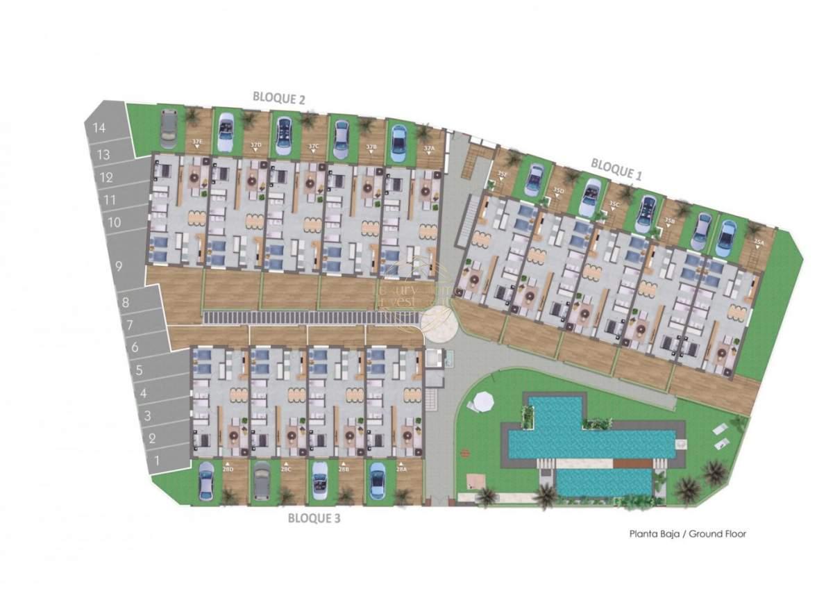 NEW BUILD RESIDENTIAL OF BUNGALOW APARTMENTS IN PILAR DE LA HORADADA New Build Residential of 28 bungalows with 2 bedrooms, 2 bathrooms on the ground floor with private garden and 2 and 3 bedrooms and 2 and 3 bathrooms on the top floor with private solarium. Residential with communal swimming pool. Each property has parking space. A relaxing combination of natural materials and extensive decoration. With the practicality of having all the services, only 300 meters from the town centre of Pilar de la Horadada and less than 3 kilometres from the beach, in the heart of the Costa Blanca. Pilar de la Horadada is a typical Spanish village in the most southern part of the Costa Blanca. The large main street has supermarkets, lots of shops, restaurants and bars and some lovely squares. The beautiful beaches of Torre de la Horadada and Mil Palmeras with fine sand promenade is just 5 minutes away. The airports of Corvera (Murcia) and Alicante are respectively 40 and 55 minutes away.Property features
